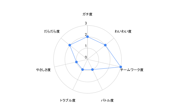 | チームワーク度 | ◎ | 収集・運搬・指示役などなど役割分担がめちゃくちゃ大事だぞ |